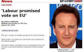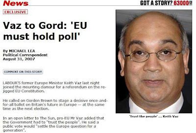 It starts in true typical style, with the sweeping declaration that, "Most generals avoid fighting the last war," then grandly declaring that, "The motley band calling for a referendum in Britain on the European Union's constitutional treaty has failed to learn this." Twisting the knife, it then pronounces that, "Its campaign is misguided," magnanimously conceding that, "it deserves better than the government's fumbling response to date."