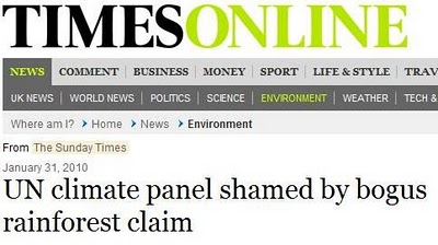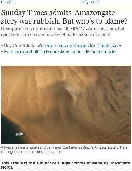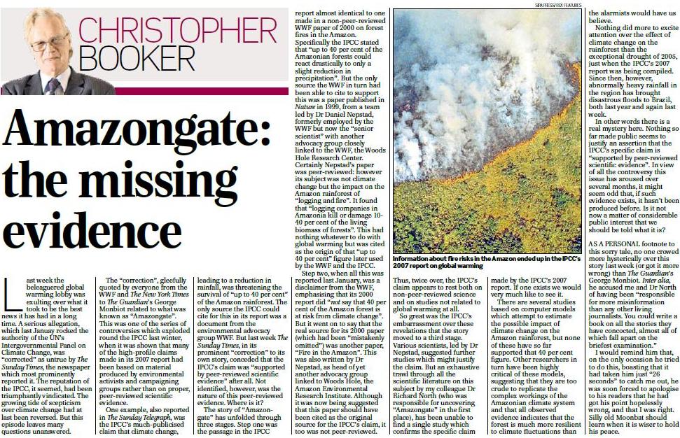 On 31 January, The Sunday Times published an article headed "UN climate panel shamed by bogus rainforest claim", the essence of which was reproduced in this post. This launched "Amazongate" in The Sunday Times, the substantive article was being based largely on work published in this blog, in two posts here and here, which must be read together.