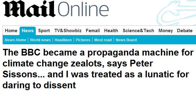 One cannot help but be amused at the coincidence of the BBC transmitting its Horizon Programme, as an ill-concealed (and poorly constructed) defence of warmist orthodoxy, at the same time Peter Sissons is serialising his book in The Daily Mail, today arguing that the BBC has become a "propaganda machine for climate change".