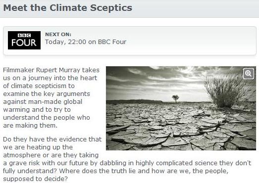 The latest effort by Dellers is to draw attention to another BBC stitch-up, which purportedly has filmmaker Rupert Murray "taking us on a journey into the heart of climate scepticism to examine the key arguments against man-made global warming" where he tries "to understand the people who are making them".