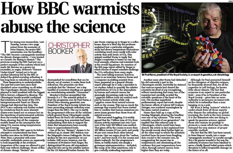 How ironic it is that Booker should write his column on how the warmists abuse science, only to have a troll launch into the comments with a stream of abuse of Booker ... and myself.