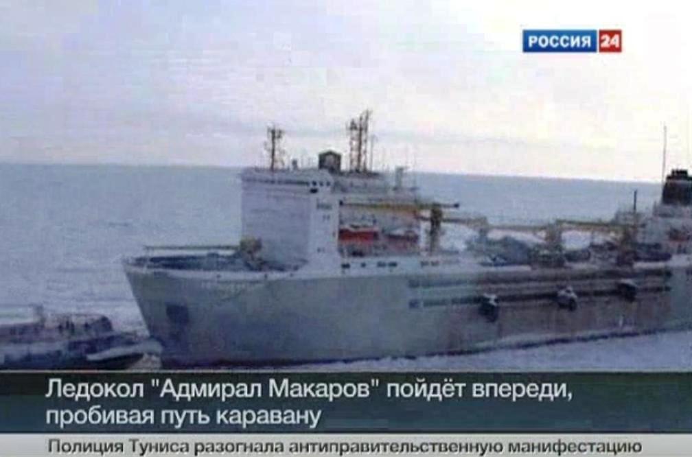 The report spoke of the icebreakers Admiral Makarov and the Krasin having led the 32,000-ton giant through "another ten miles of thick ice" and of the convoy "moving to clear waters". Only the Voice of Russia seemed to be reporting this, however, and even it was hedging its bets by saying that "experts" are predicting that the ships will break clear, rather than making direct assertions.