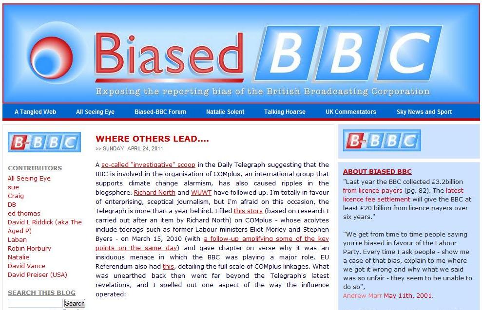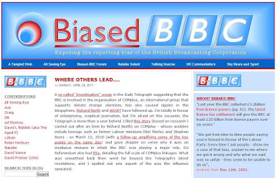 I don't want to be churlish, and I am pleased that the Telegraph is finally looking at the rat's nest of establishment money-down-the-drain activity that supports climate change hysteria. But if investigative ace Jason Lewis properly read blogs such as EU Referendum and B-BBC, he'd truly be ahead of the pack. The real scandal here is that the BBC is not only involved in COMplus, but also directly part of a huge related network of climate change activism.I've taken a little flak for my own comments – which is fair enough – but I do believe there are underlying issues here, so humour me. I've added a comment to the Telegraph site, endorsing Biased BBC, and noting the following: