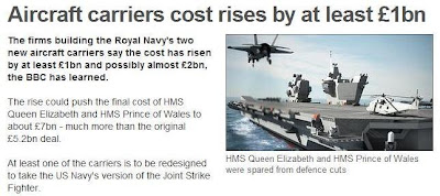This, we learn from diverse sources is to be about £1 billion, just announced by the consortium building the ships, bringing the ship-building costs to £6 billion.
