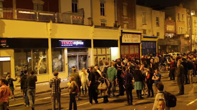 What is very evident is that, despite the idiot media and their headlines, and those who are trying to jump on the bandwagon, this was not an anti-Tesco riot. It was an anti-police riot, reacting to the aggressive behaviour of the police and the arrogance, during the riot – which they provoked – and afterwards. This comes over in a Daily Mail report where a spokesman for Tesco says of the current incident: "Last night's violence in Stokes Croft and beyond underlined that this is not an anti-Tesco protest, our store is not even open".