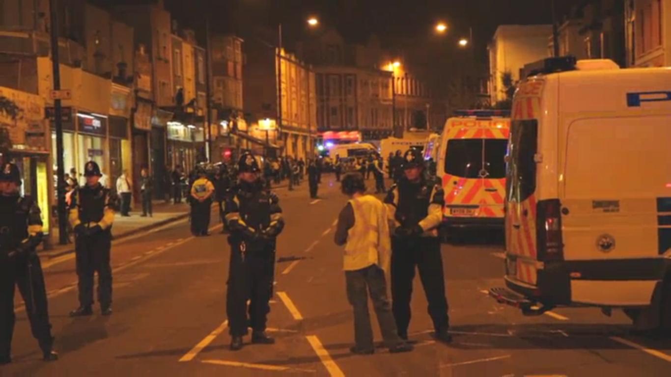 Much of the police activity then seems to be focused on pushing people off the main road, and for a short time, it seems to have been relatively tranquil. One local witness reports that about 11.15pm, "we were able to walk through (quickly, holding onto each other's arms) and got into our flat". She continued: