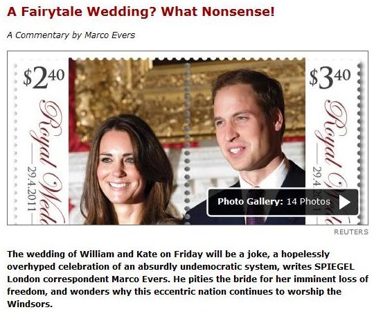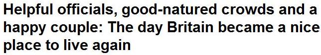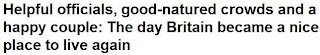 For the "colleagues" who watched yesterday's charade, they must feel it's as easy as stealing candy from babies, especially with our gushing media. You do wonder about those poor, lost souls though ... "royal couple with a common touch" says The Times, underneath its headline telling us that the weddlings have been "whisked away by helicopter". I mean to say, how boringly common is that?