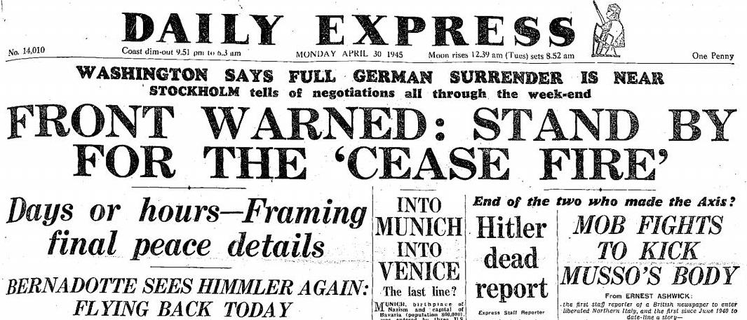 I suppose it is significant that today is also the anniversary of Hitler's death (yesterday was the anniversary of his marriage to Eva Braun), marking the final stage of the long process of breaking free from the grip of the Nazi regime which had terrorised Europe.