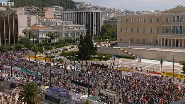 It is getting as predictable as that, with the first day of a 48-hour general strike in progress – the fourth this year - and crowds converging on Syntagma Square, where parliament will vote on sweeping spending cuts.